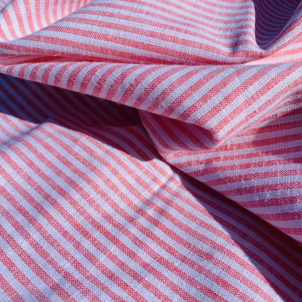 Tu aimes les gaufres? Bienvenue ;) Sinon pour les couturières, il s'agit d'un seersucker rayé avec une chouette structure et un aspect chiné qui change des seersuckers que l'on voit habituellement.