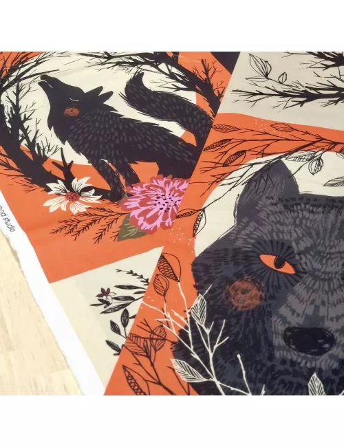 Ce tissu en 100% coton est un chefs d'oeuvre de plus de la designeuse Anna Maria, connue pour ces designs colorés. Ce mélange abstrait et réaliste d'hellébores orientales, de pivoines et de coquelicots vous emmène dans les années 70 avec ses teintes de fuschia, de mauve et de marron, sans oublier la jolie note de corail. Un régal pour les yeux.