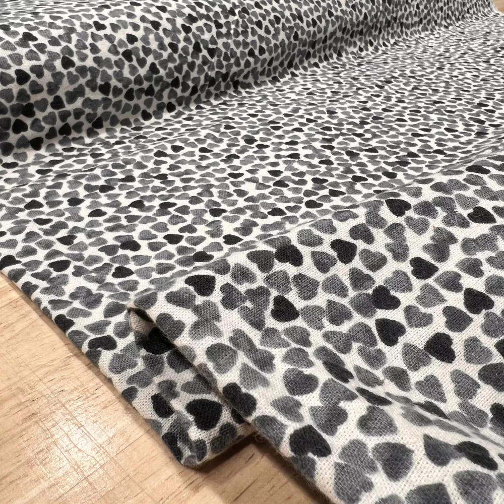 Coup de coeur pour cette flanelle et ses minis motifs dans des teintes de dégradés de gris. Nul besoin d'attendre la Saint-Valentin pour se coudre un pyjama de l'amour ! Avec cette flanelle, une certitude, vous pourrez allier chaleur, confort et singularité.