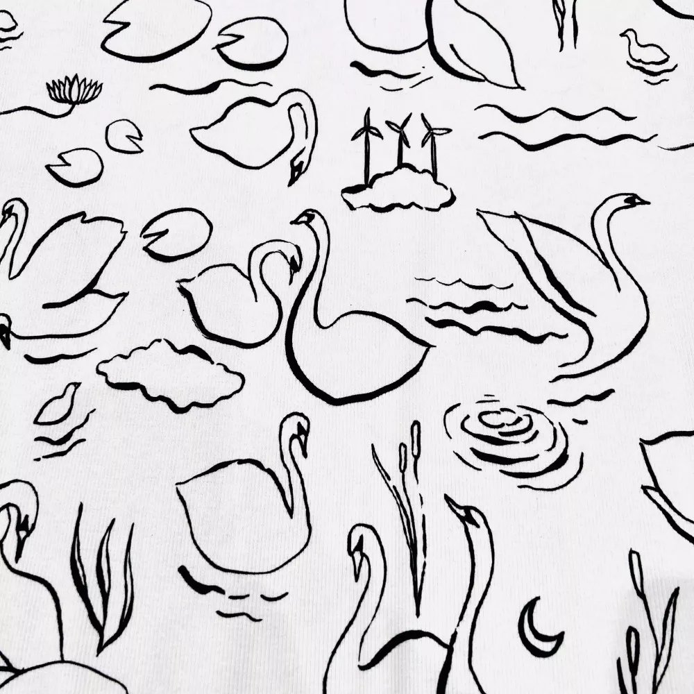 Le motif cygnes résiste très bien aux lavages, surtout si vous retournez vos vêtements avant de les mettre en machine. Un tissu durable, qui garde sa douceur et sa tenue lavage après lavage.