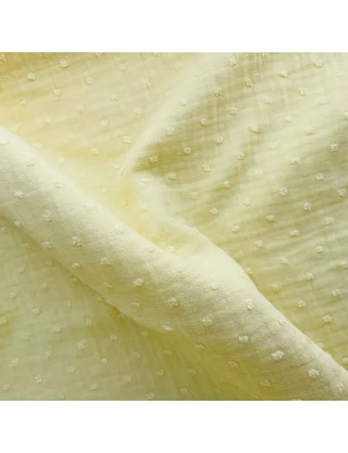 Tissu Double Gaze Plumetis Jaune Beurre