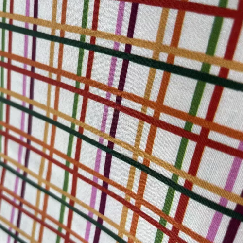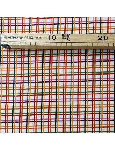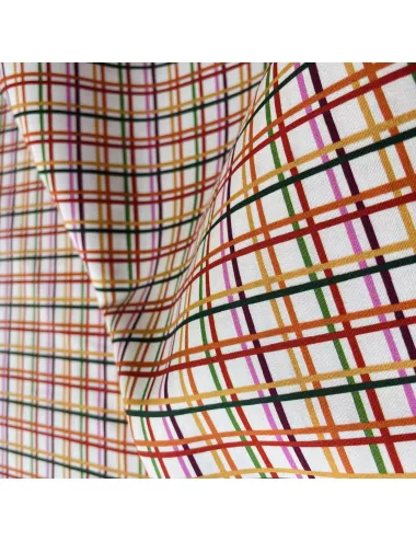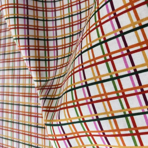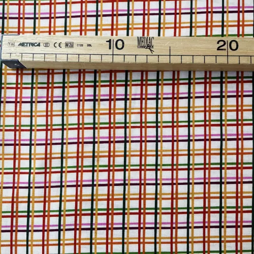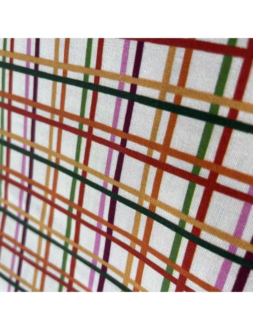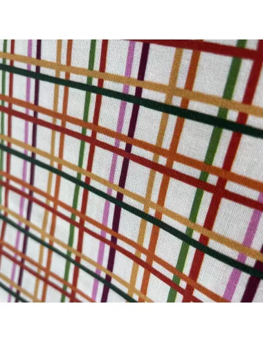 Cette popeline de coton fait partie de la Collection "Madhya Pradesh". Ce motif à carreaux dans les teintes d'orange, rose et verte s'associent à merveille avec le reste de la collection, alors on vous conseille de mixer les imprimés !
