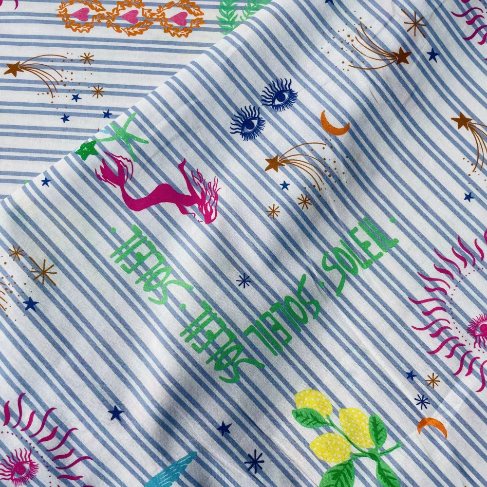 Cette popeline ensoleillée respire la joie de vivre avec ses petits soleils souriants et ses cœurs colorés, parfait pour apporter une touche de bonne humeur à n’importe quelle création ! ☀️