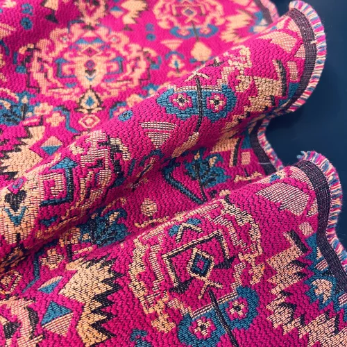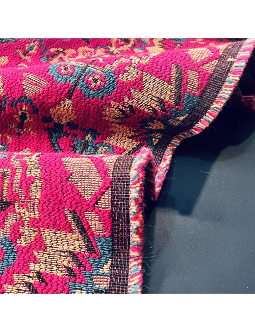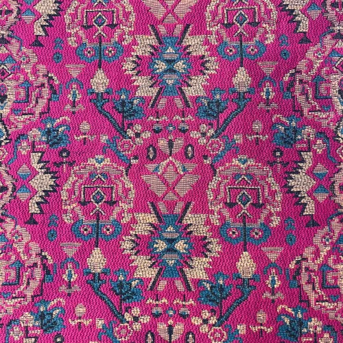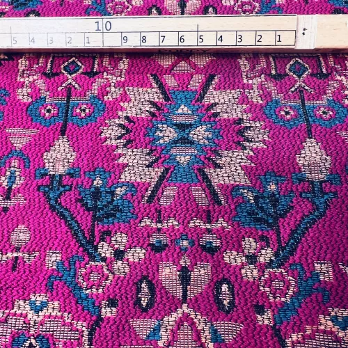 Un jacquard d'exception issu de stock haute couture qui va donner une nouvelle vie à ta garde-robe avec son fuschia profond, ses notes de pêche et de bleu canard. Une pièce originale à associer en veste, jupe, short ou pourquoi pas pour de l'accessoire.
