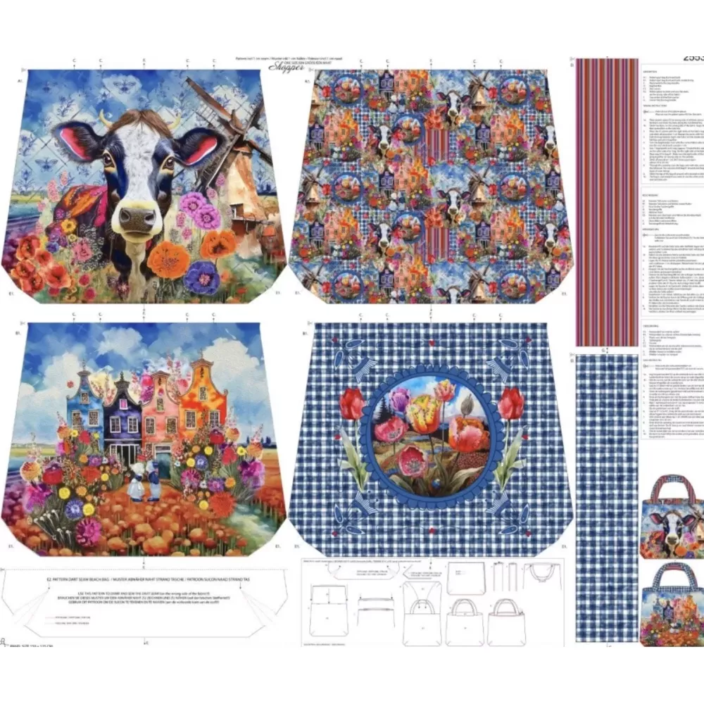 Ce panneau est composé de 4 visuels à associer par deux, avec une doublure (popeline, coton épais, coton enduit). Vous pouvez ainsi réaliser plusieurs sacs avec un seul panneau, ou un sac réversible en combinant les visuels. Chaque visuel mesure 45 de long par 60 cm de large.