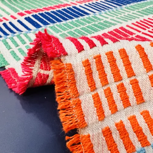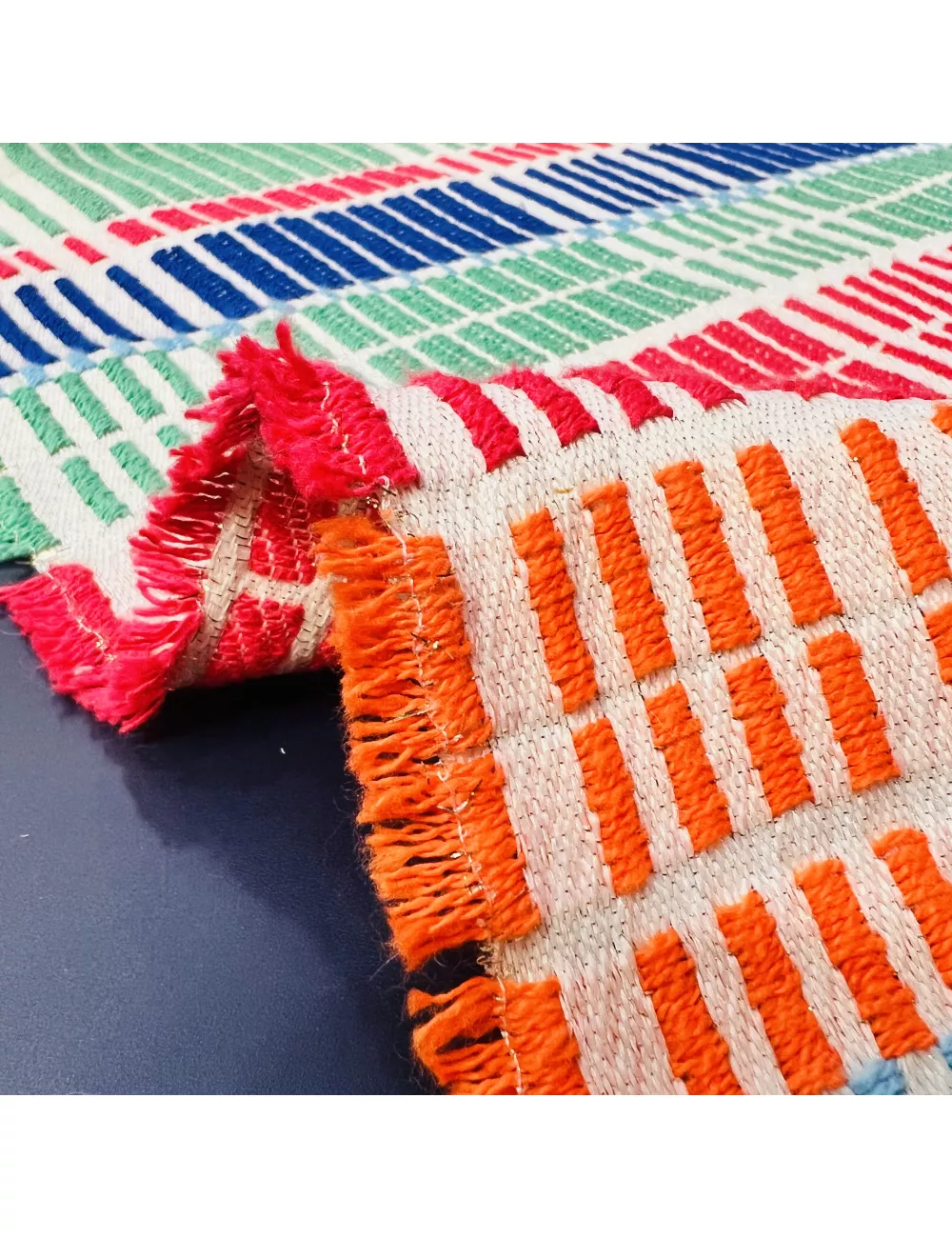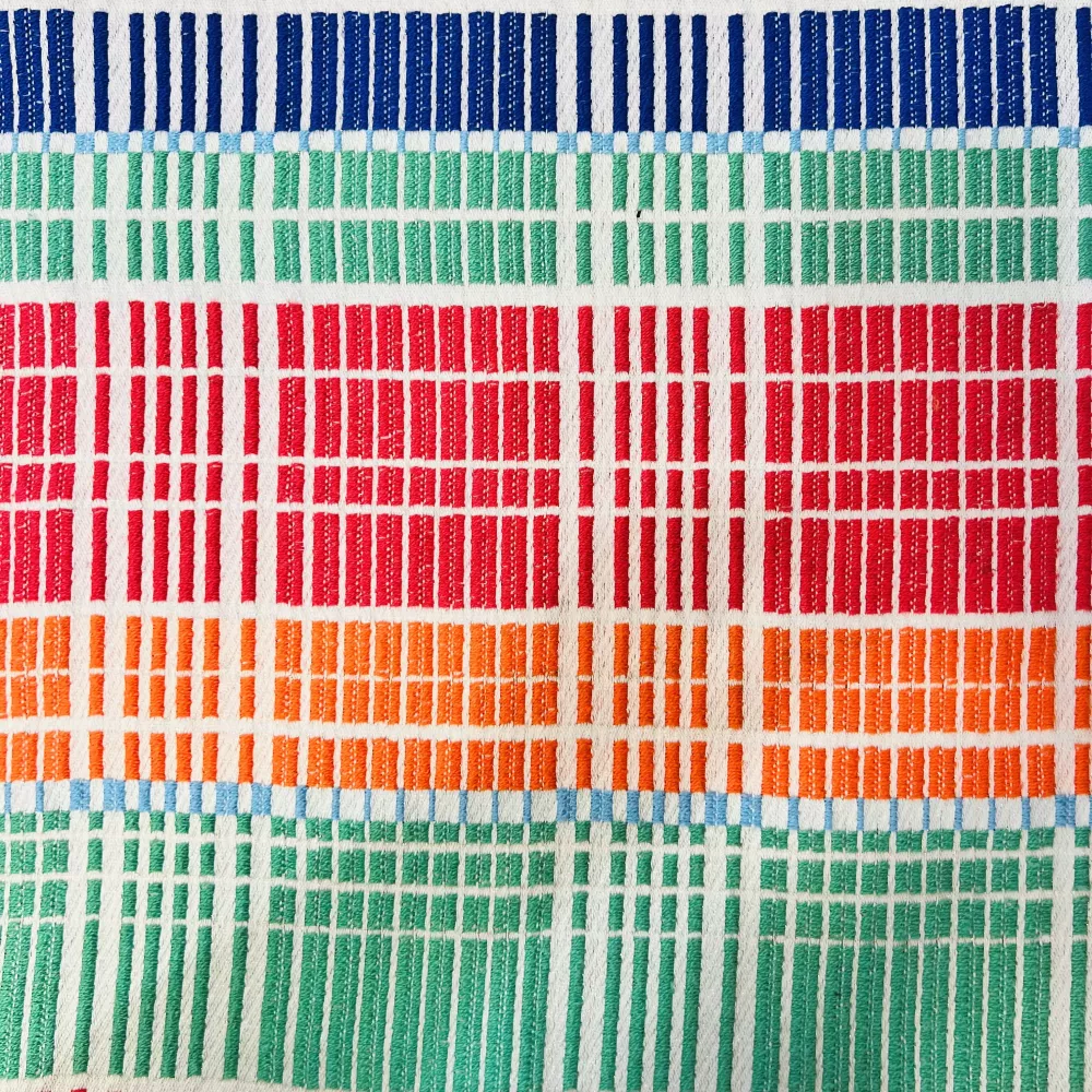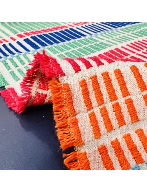 Une beauté de tweed comme on en vioit peu ! Graphique pour jouer sur le sens des lignes, c'est tout l'intérêt de ce tissu aux couleurs éclatantes, du mandarine, du fuschia, menthe et une point de bleus, sans oublier ses petites pointes du lurex discrètement dissimulées dans le fond écru.