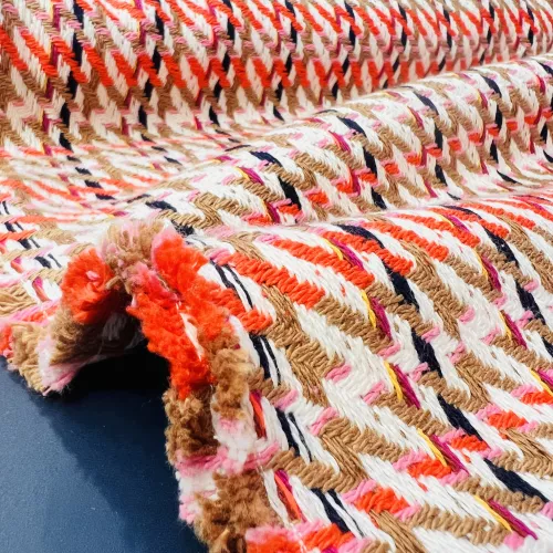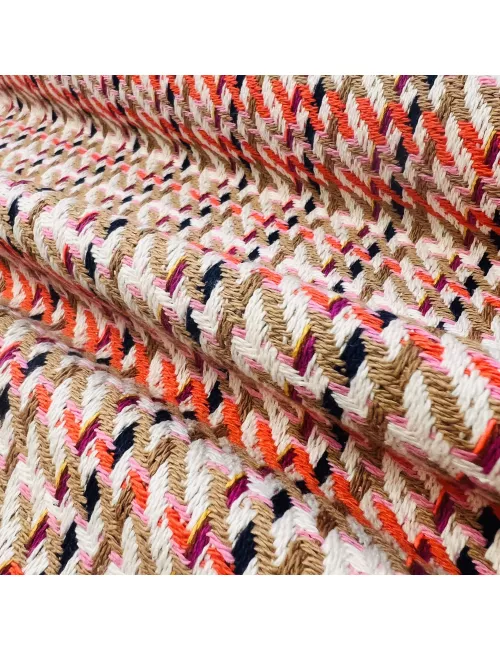 Ce tweed Gloria est aussi lumineux que vitaminé. Avec lui vous ne passerez pas inapperçu, et c'est bien tout ce qu'on vous souhaite. Coté look il sera parfait pour des projets couture tel que la veste, une ensemble tailleur jupe ou short et pourquoi pas la fameuse banane.