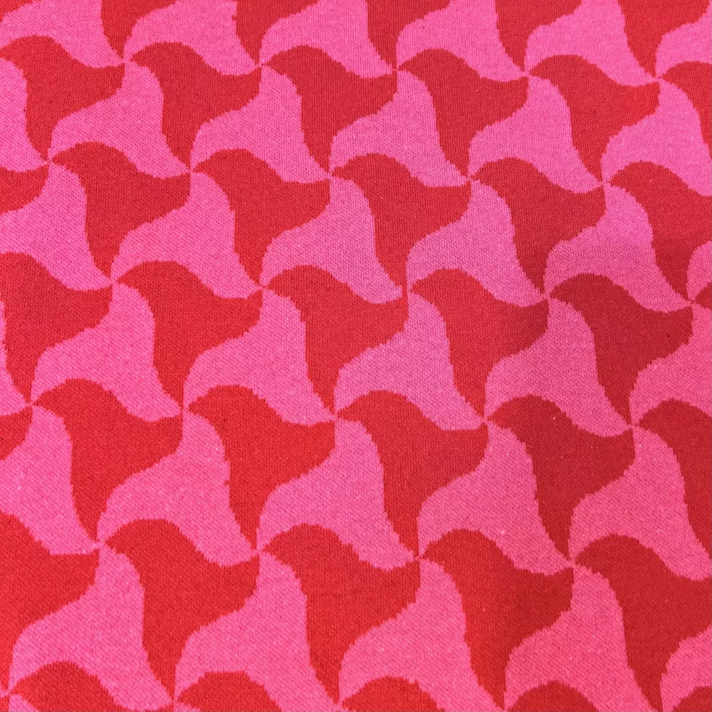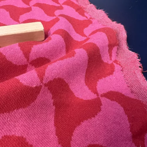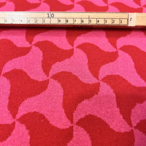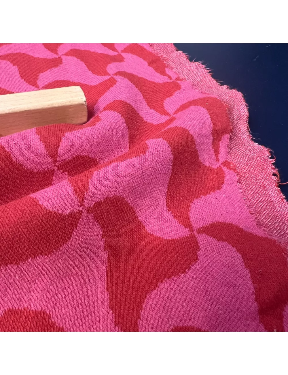 Cette maille dense est strech de par son tissage naturel ce qui vous permettra de réaliser des projets couture proche du corps, comme une jupe crayon, une robe droite ou encore de coudre un sweat. Cette association de rouge et de rose est dablement canon!