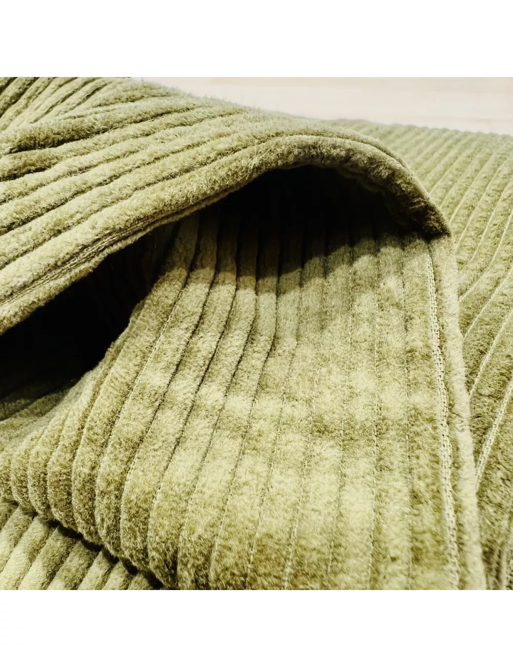 Du velours olive pour une tenue so british? Ce vert qui fait partie de la famille du kaki est à tomber par terre. Juste ce qu'il faut de lumière et d'une douceur avec ses petits poils. Un velours à grosses côtes en 100% coton, qualité made in France.